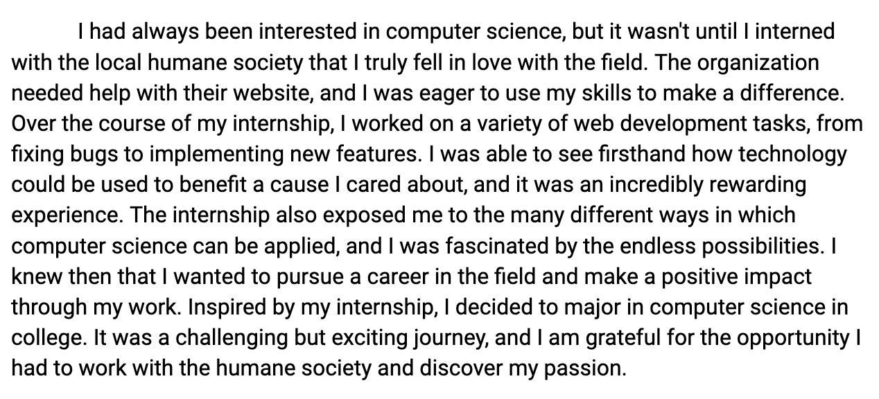 Write a narrative about your internship working on web development the local humane society and how it inspired you to study computer science